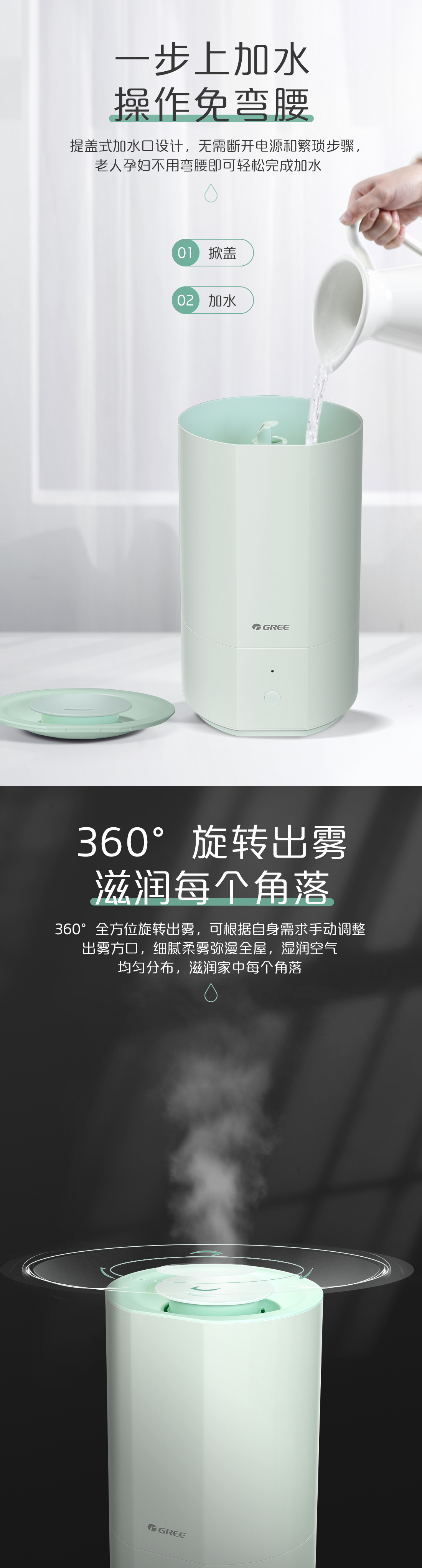 微米级水雾细腻滋润,健康全拆洗,呼吸新鲜水雾,一步上加水,操作免弯腰