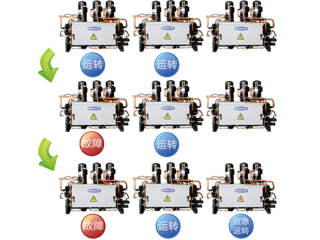 单模块独立系统 压缩机逐台启动,均衡运转,整机寿命更长;各模块独立系统运行,单模块故障时不影响其他模块运行。 | ![]() |
