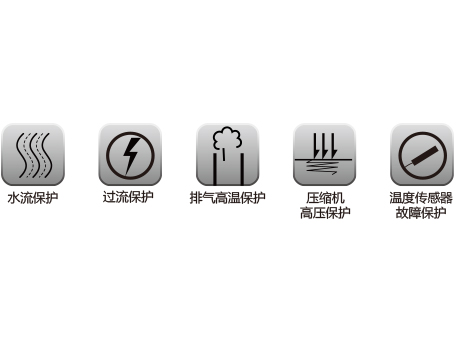 ![]() | 多重保护 具有高压保护、低压保护、压缩机过载保护、排气高温保护、水流故障保护、感温包故障保护等二十多项保护措施,有效避免故障隐患,确保机组安全运行。 |