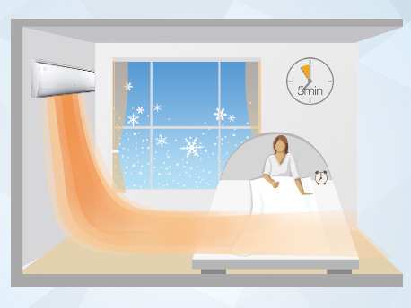 睡前预设,提前5分钟预热,一到预设时间即刻送出舒适暖风,让您在每一个冬日早晨,起床不再冷。
