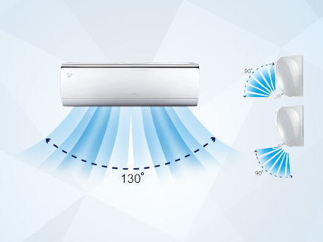 原创大导风板与连杆结构设计,有效增大导风板上下旋转的角度,对气流进行分流导向,实现上下180°大广角扫风,淋浴式制冷,地毯式送暖,无感送风,舒适更健康。