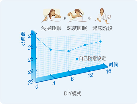 DIY模式:自定义温度曲线和睡眠时间,设定自动启动和退出时间,并可保存下来长期使用。