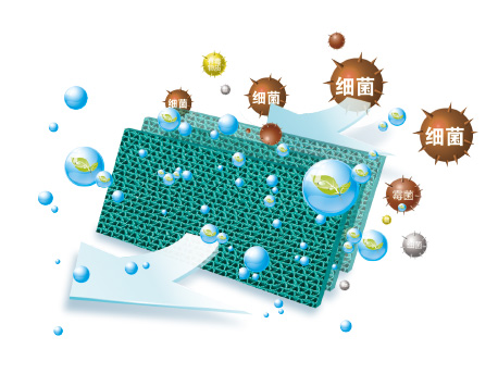 多种抗菌材料的联合工作,使过滤网具有出色的抗菌、防霉效果,保持长久清洁。