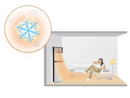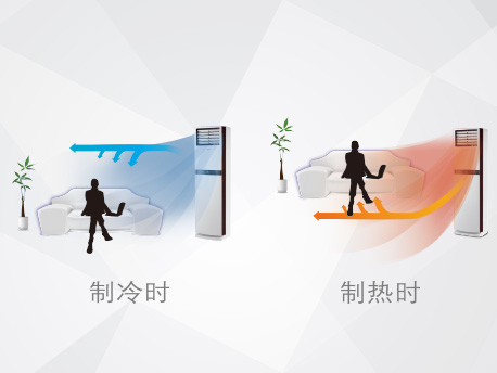 立体送风,舒适不止一面。冷风水平向上吹出,自然下沉,清凉从头始;暖风向下送出,自然上升,暖从足部起。